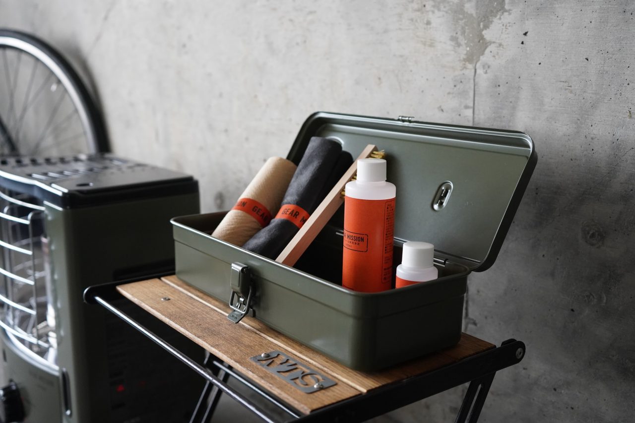 クラフトマンシップあふれる確かな品質と実績でプロのニーズに応えてきた、1969年創業の大阪の工具箱メーカー「東洋スチール株式会社」とのコラボレーションのツールボックスにストーブの掃除に便利な道具が入っています。