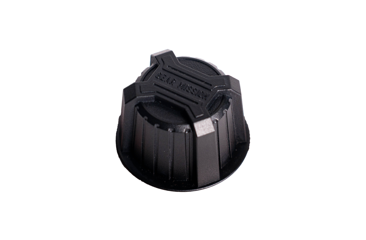 GEAR MISSIONシリーズの為に特別に設計された限定デザインのカスタムパーツです。通常のつまみとは異なり、マットな質感なため滑りにくく、回しやすい形状になっています。中央にはGEAR MISSIONのロゴが刻印されています。