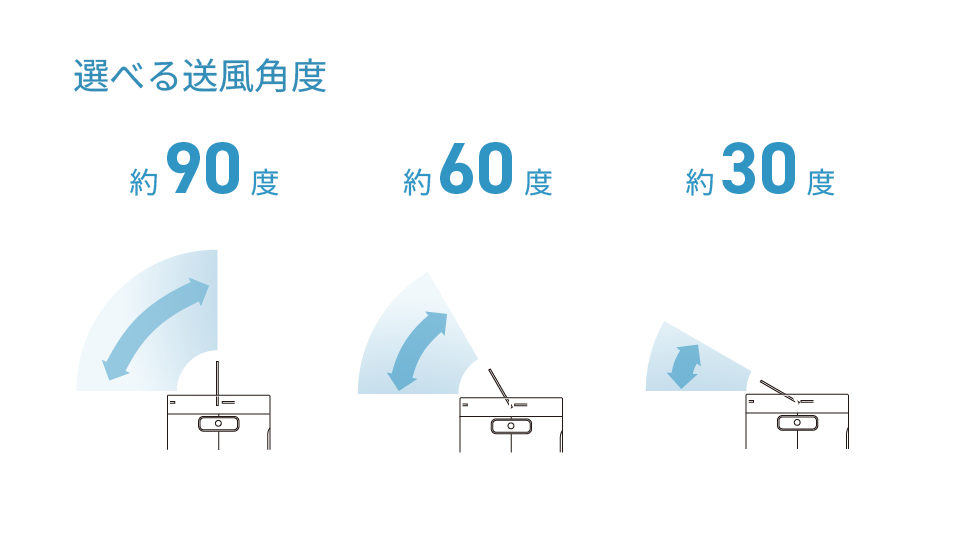 送風は最大90°まで上向きに調整可能。