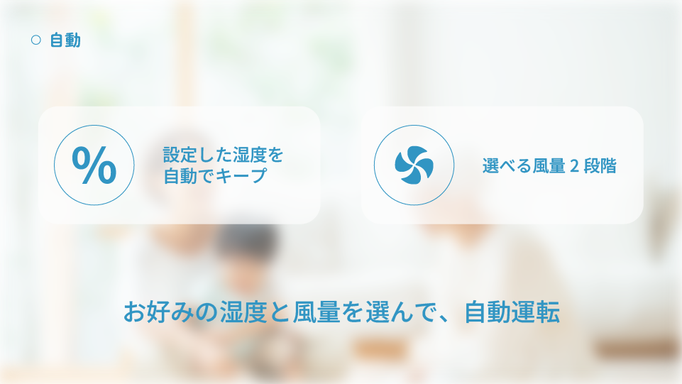無駄な運転を抑えながら、快適な湿度環境を自動で維持します。