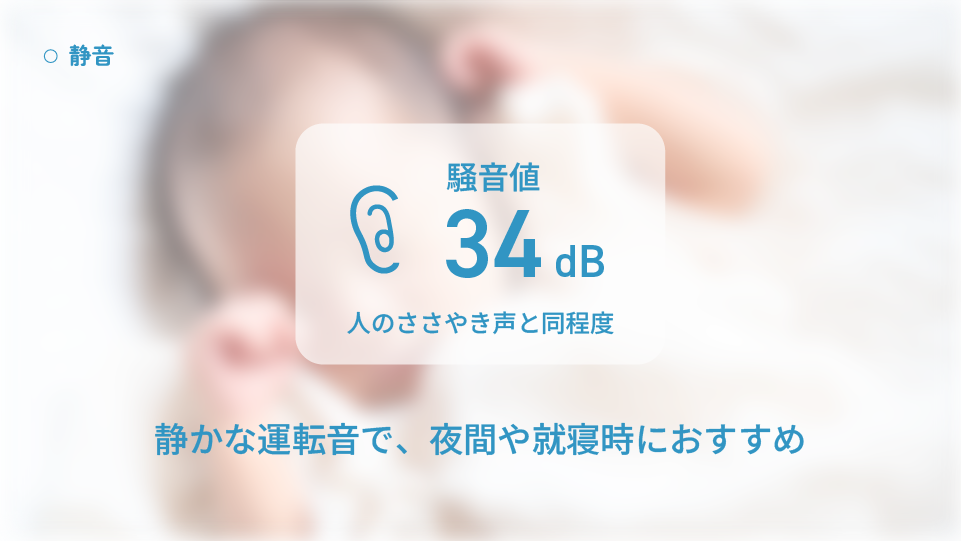 就寝時やリラックスタイムなど、音が気になるシーンでも快適に使用できます。