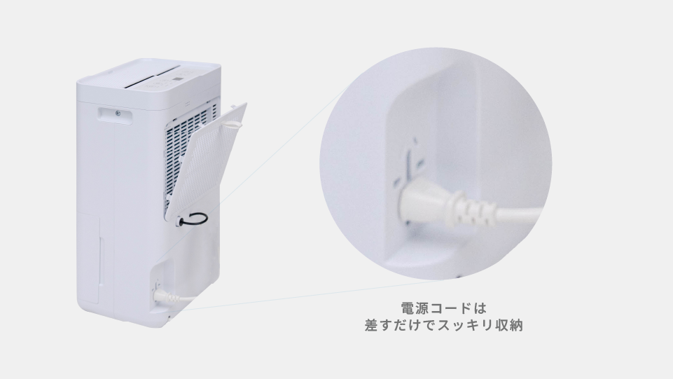 電源コードの先端を本体の専用差込口に収納できる設計。