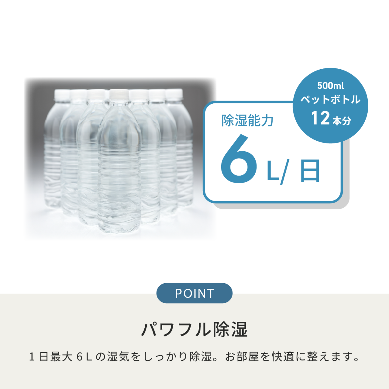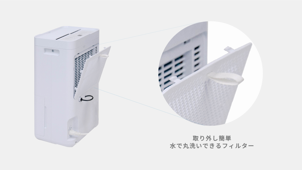 お部屋にこもった湿気をしっかり取り除き、ジメジメしがちな空間もカラッと快適に整えます。