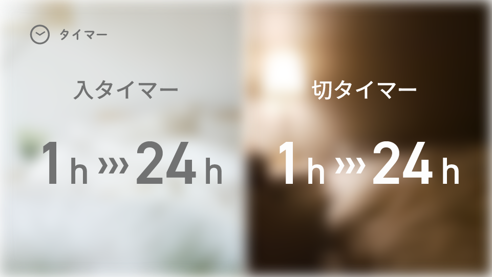運転の開始時間と停止時間を設定できる入・切タイマーを搭載。