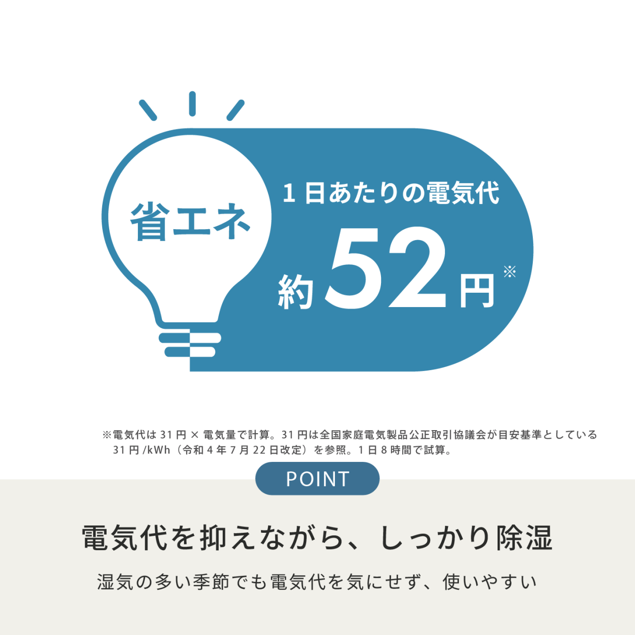 湿気の多い季節でも電気代を気にせず使いやすく、毎日の除湿を快適にサポートします。