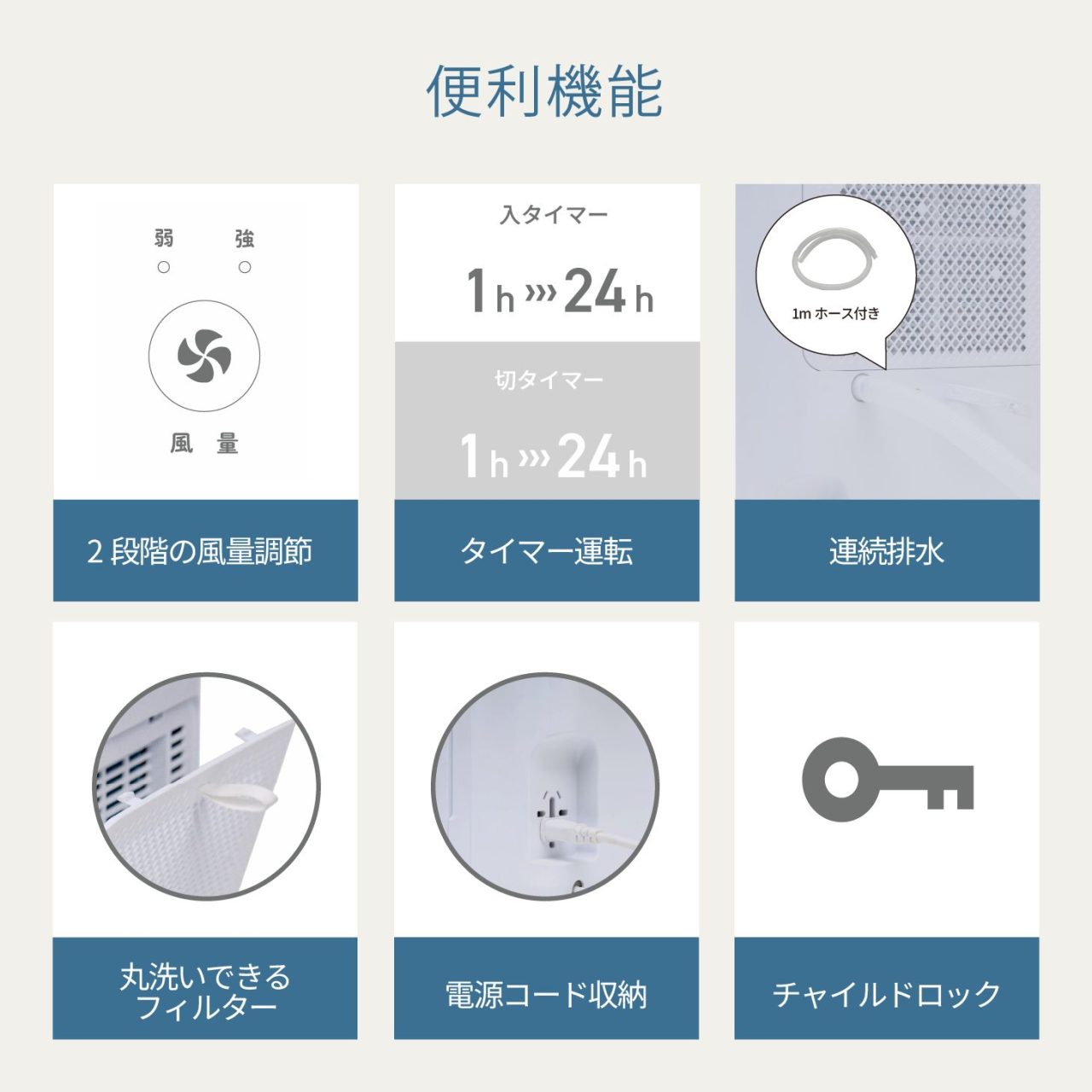 長時間の除湿や梅雨時期の湿気対策にも便利です。