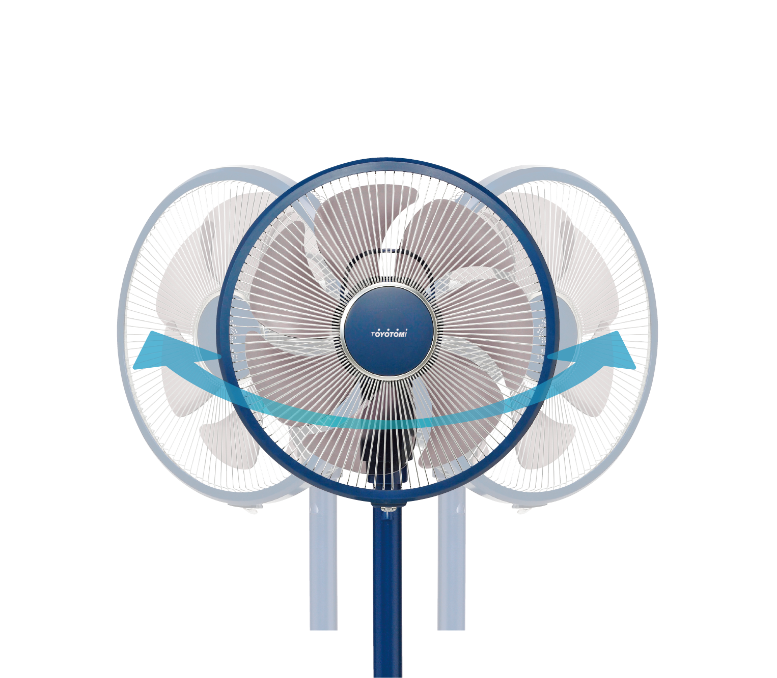 ローノイズファンは、羽根にひねりを加えることで風切り音を抑え、空気抵抗を少なくした独自の羽根の形状を採用し、風を無駄なく効率的に送り出します。運転音が静かで、夜間の使用や集中したい時などでも音が気になりません。リビングや寝室、オフィスなど、どんな場所でも快適に過ごすことができます。