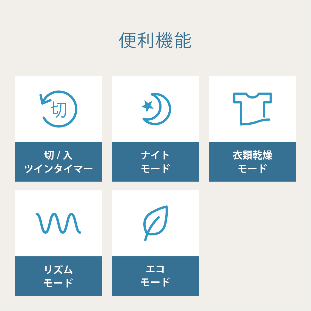 徐々に風力を弱めるので節電しながら心地よく眠れます。