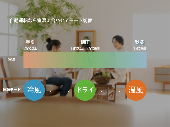 「自動風」「強風」・「弱風」・「微風」からお好みの風量をお選びいただけます。