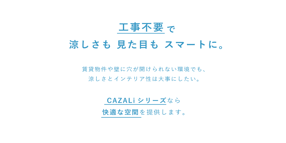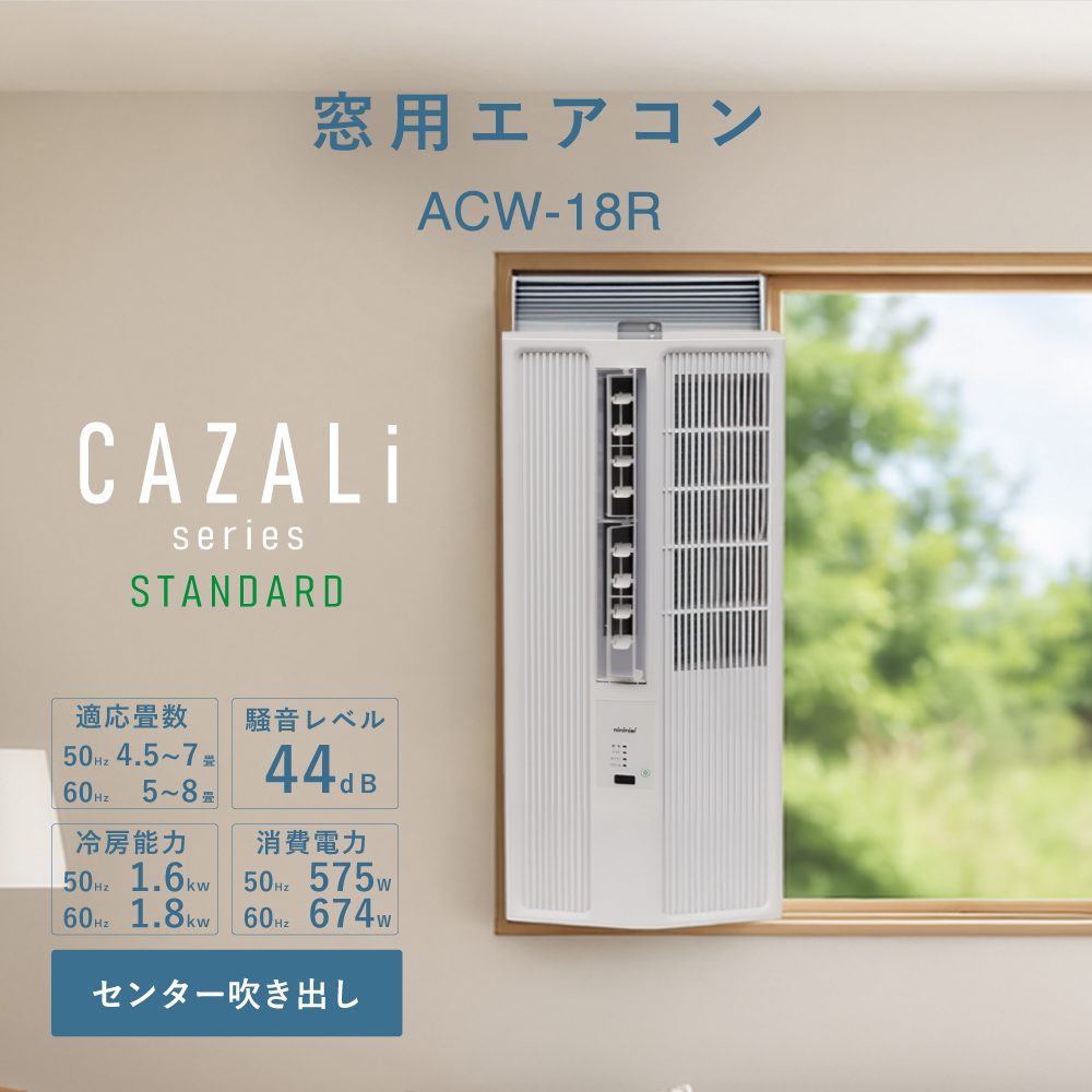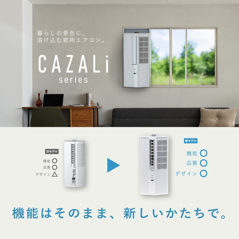 シリーズ名「CAZALi」は、“窓を着飾る”という言葉に由来しています。窓辺をただの設置場所ではなく、暮らしを彩る景色の一部へ。CAZALiシリーズは、快適さと美しさを兼ね備えた窓用エアコンです。