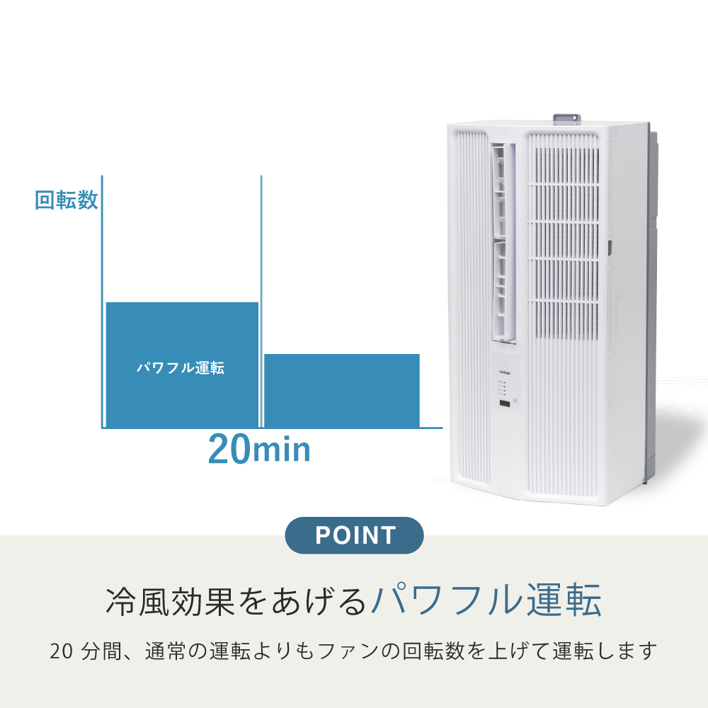早く部屋を涼しくしたい!暑すぎる!そんなときはパワフル運転がおすすめ。20 分間、通常の強運転よりも10% ファンの回転数を上げて運転。
