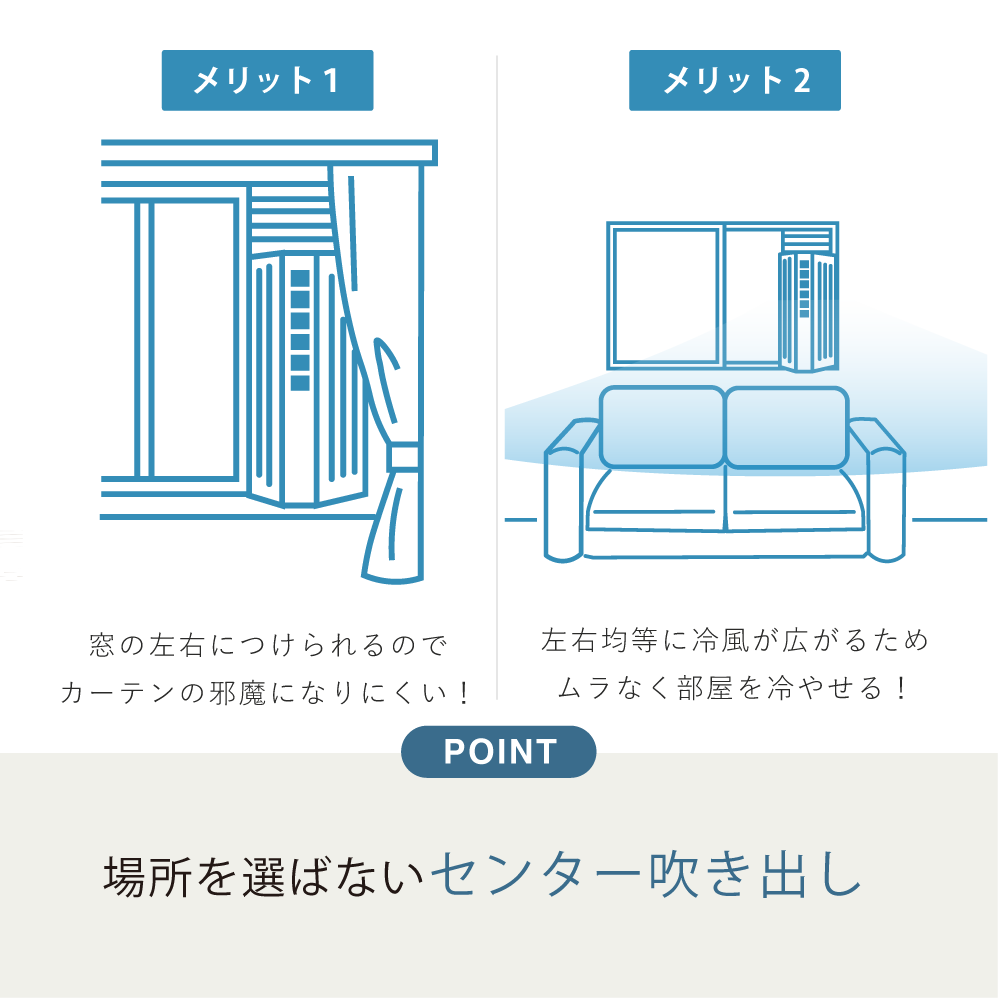 部屋の中の空気を循環させたい!そんなときには送風運転がおすすめ。センター吹き出しの為、効率よく部屋の空気を循環させます。