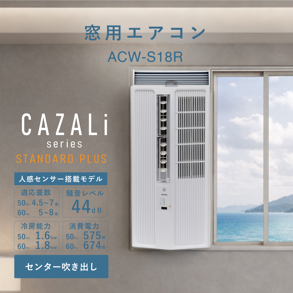 シリーズ名「CAZALi」は、“窓を着飾る”という言葉に由来しています。窓辺をただの設置場所ではなく、暮らしを彩る景色の一部へ。CAZALiシリーズは、快適さと美しさを兼ね備えた窓用エアコンです。