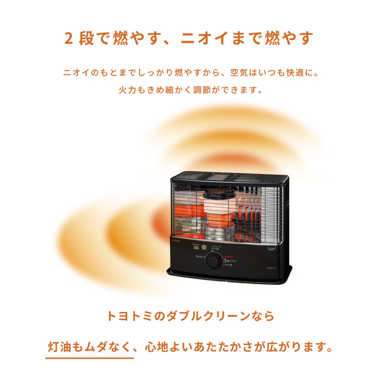 トヨトミ独自の燃焼技術の石油ストーブ。遠赤効果アップ&ニオイを抑えるダブルクリーン。