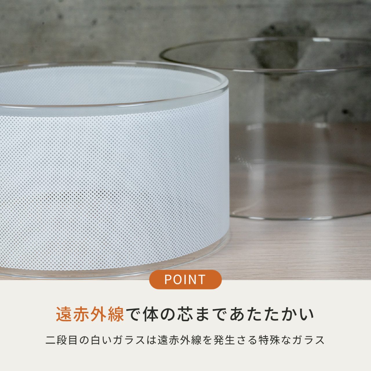 二段目のガラスには遠赤外線を発生させる特殊なコーティングをしたガラスを採用しています。遠赤外線で体の芯まであたたかくする工夫がつまったダブルクリーン。