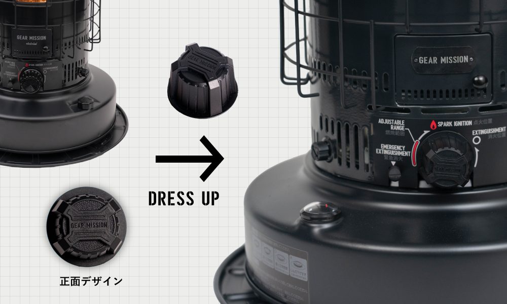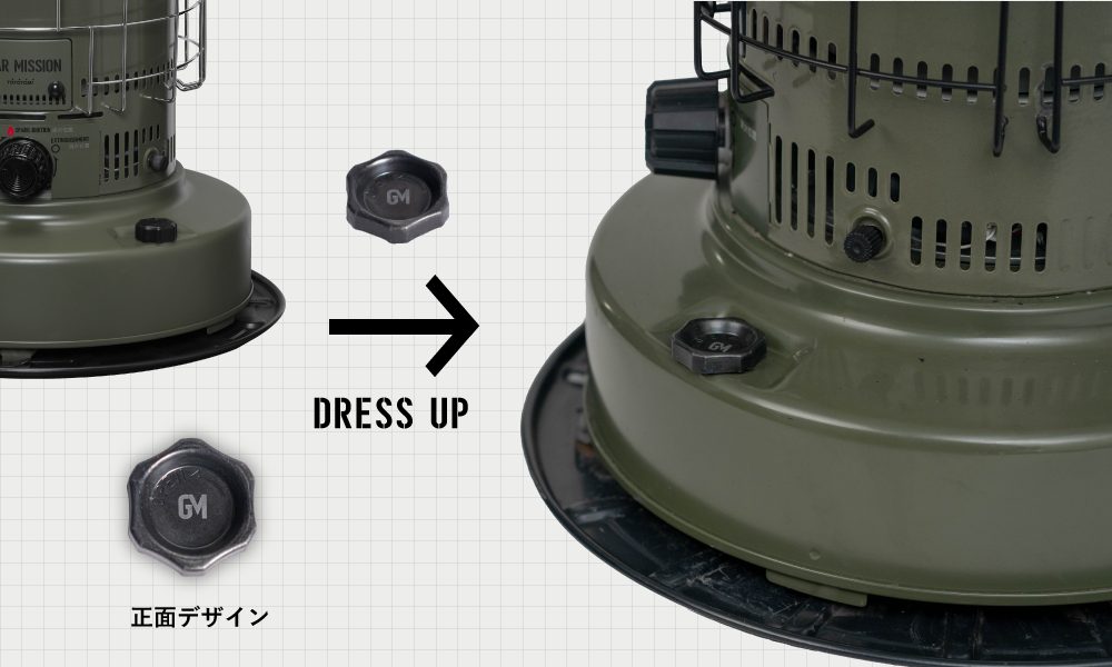 2025年10月30日にリリースした新製品「K3-GM1(石油コンロ)」にも使用していただけます。カスタマイズパーツを取り付けることによって、より無骨で個性あふれる石油コンロに仕上がります。